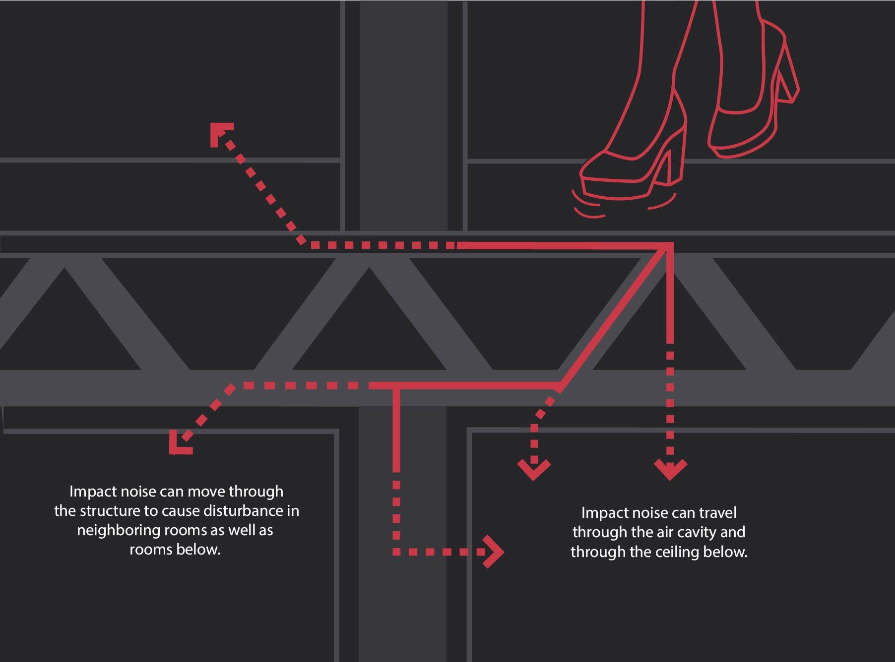 And here is a diagram showing how impact noise travels:
