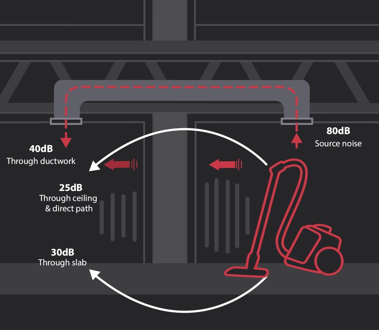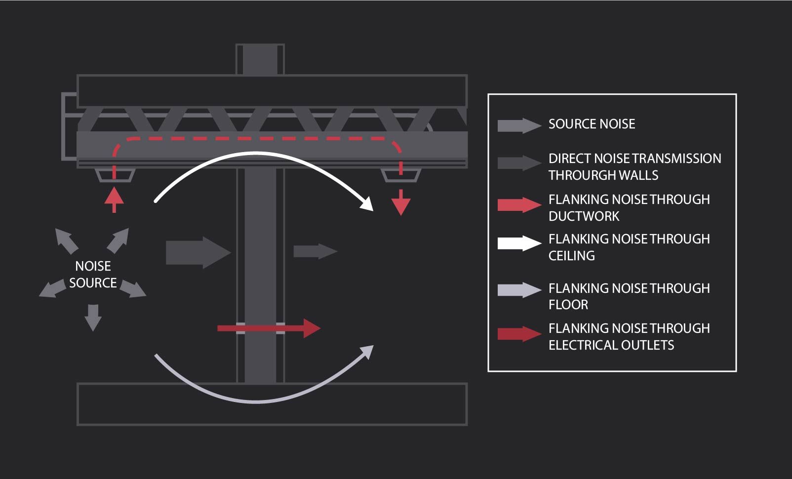 Here is a diagram showing how airborne noise travels: