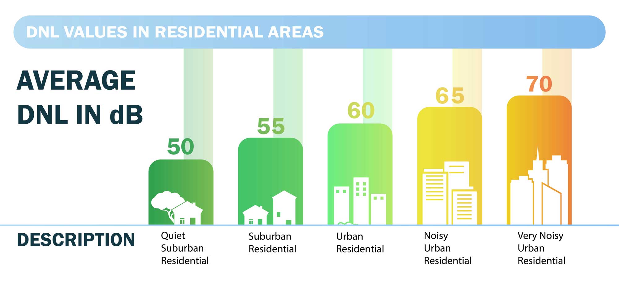 Additionally, you can determine whether the noise you want to file a complaint about exceeds average levels by using the table below. It shows average decibel levels for different residential areas: