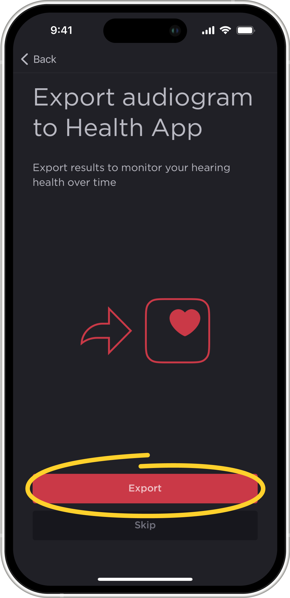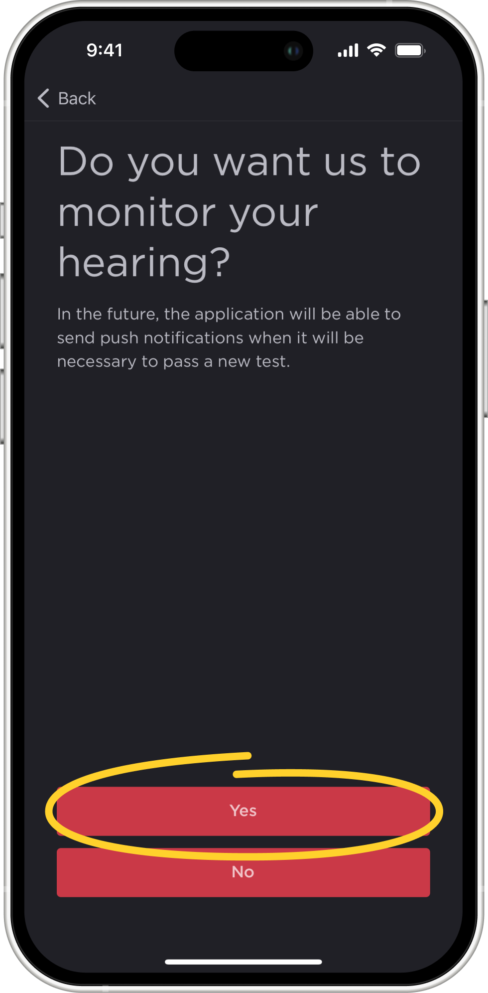 Since hearing health, like the health of the whole body, changes over time, we recommend that you regularly take a hearing test to monitor its condition dynamically. To do this, the app can send you a notification once a month with a reminder to take another hearing test.