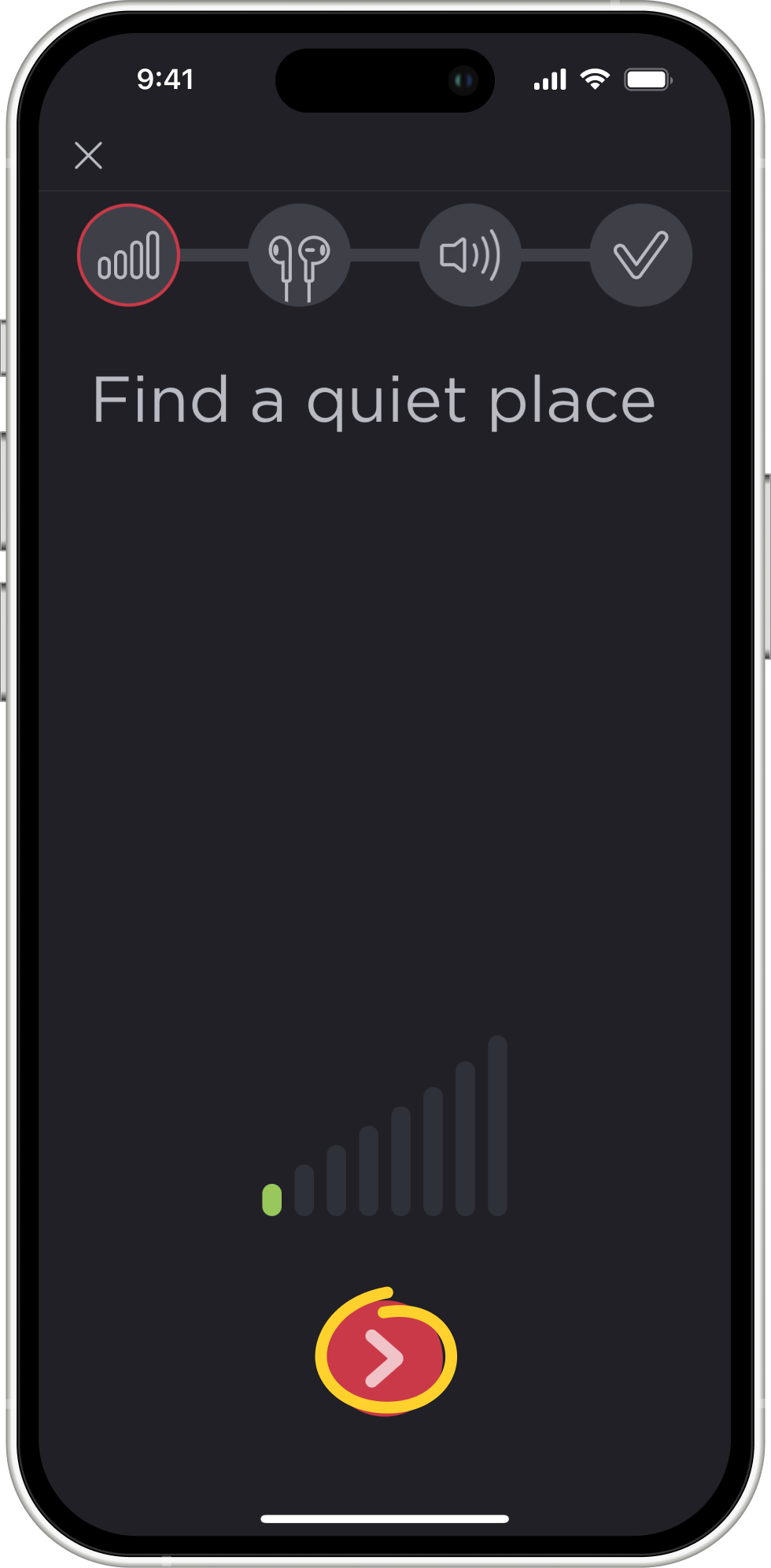 - Next, you will be taken to the hearing test interface. To ensure the test results are as accurate as possible, you will need to go somewhere quiet.